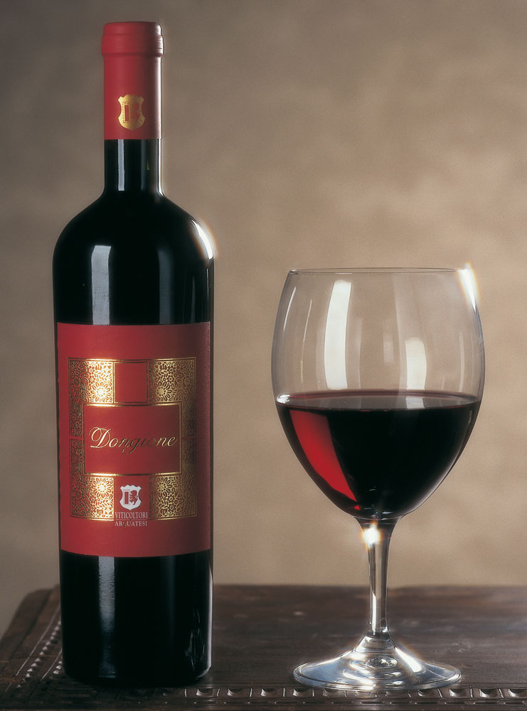 “Great novelty of 1999 and the company’s choice proposal for celebrating, with its customers, the end of the century and the beginning of the millenium. Dongione, a refined still red, is produced from the best vineyards of the Arquetse hills. It is a real homage to this land, famous for its vines and fine wines. The ancient viscounty tower is brought to mind by the name of the wine itself and the organoleptic characteristics of the wine: unusually full-bodied yet delicate, with a fruity note. Serve at room temperature throughout the whole meal. Thanks to its vigour and versatility it is perfect for complementing and enhancing all kinds of fine cuisine.“